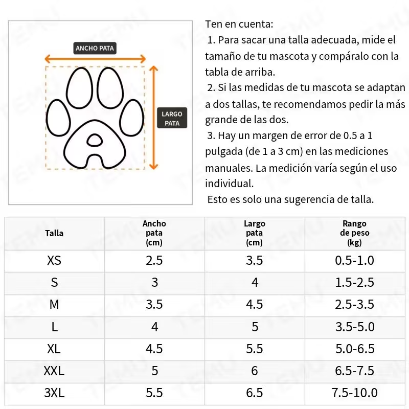 Estos zapatos no solo protegen las patas de tu mascota, sino que también aportan un toque de estilo y comodidad. Perfectos para días lluviosos, terrenos difíciles o simplemente para mimar a tu perro con un detalle útil y encantador.