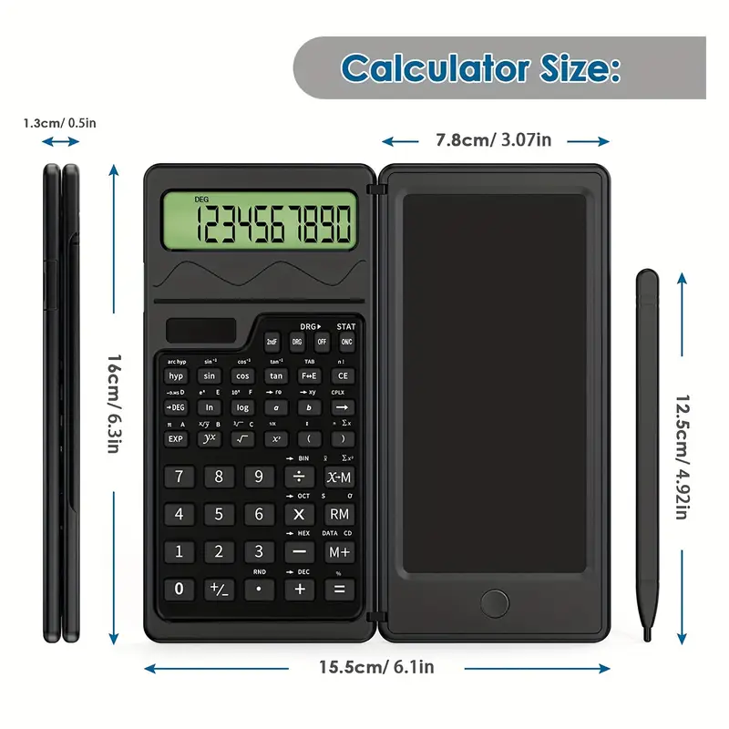 Optimiza tus cálculos y tu productividad con esta calculadora científica plegable de 10 dígitos, diseñada para profesores, ingenieros y estudiantes avanzados. Su pantalla LCD amplia permite visualizar los números con claridad, mientras que el tablero de escritura a mano integrado facilita anotaciones rápidas y la resolución de problemas complejos.
