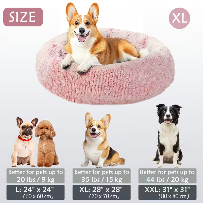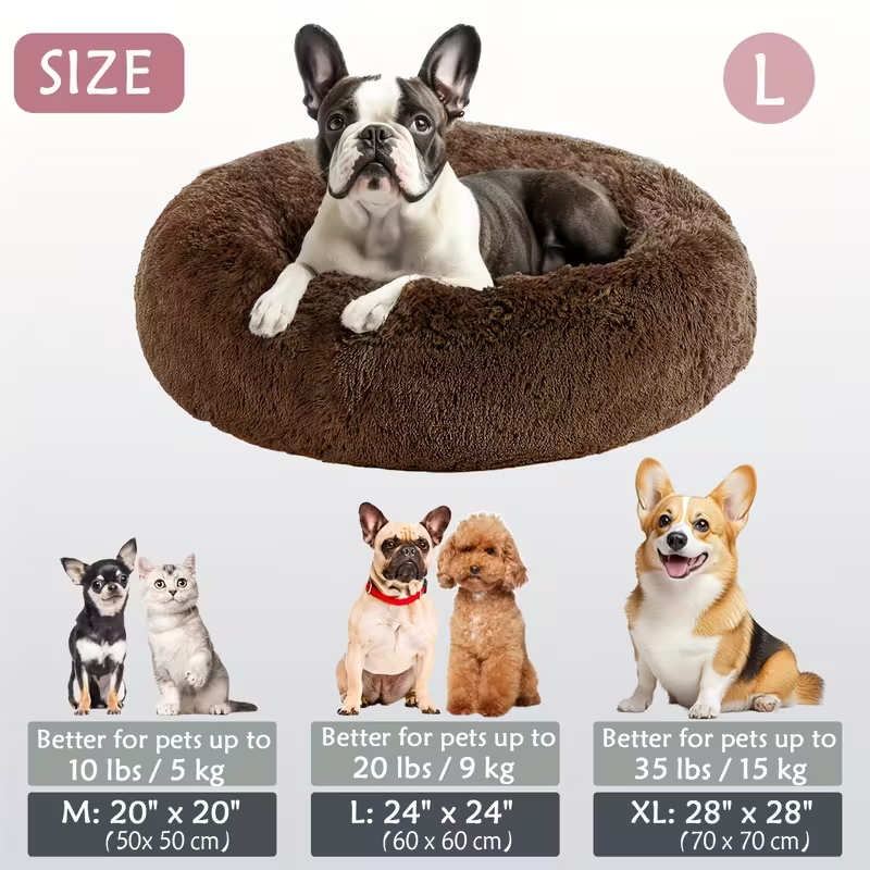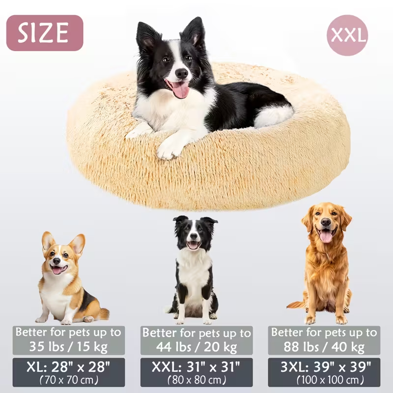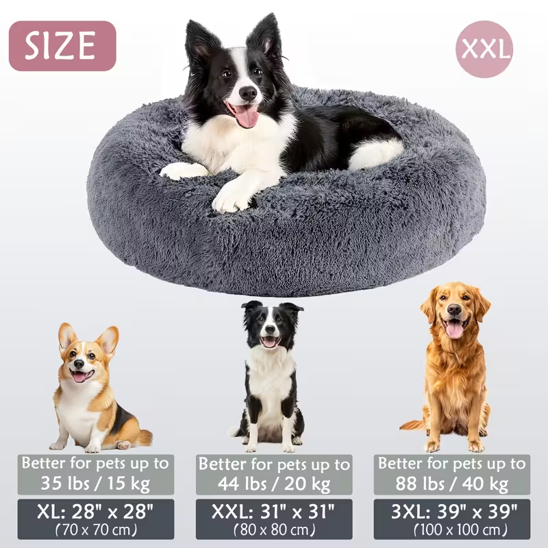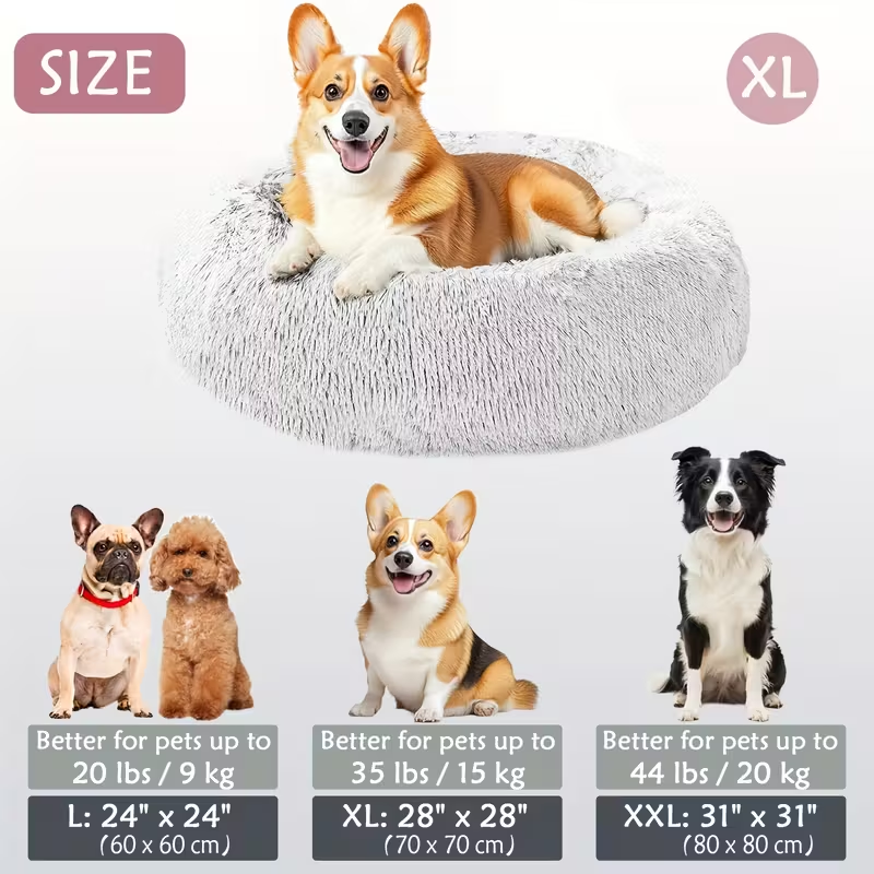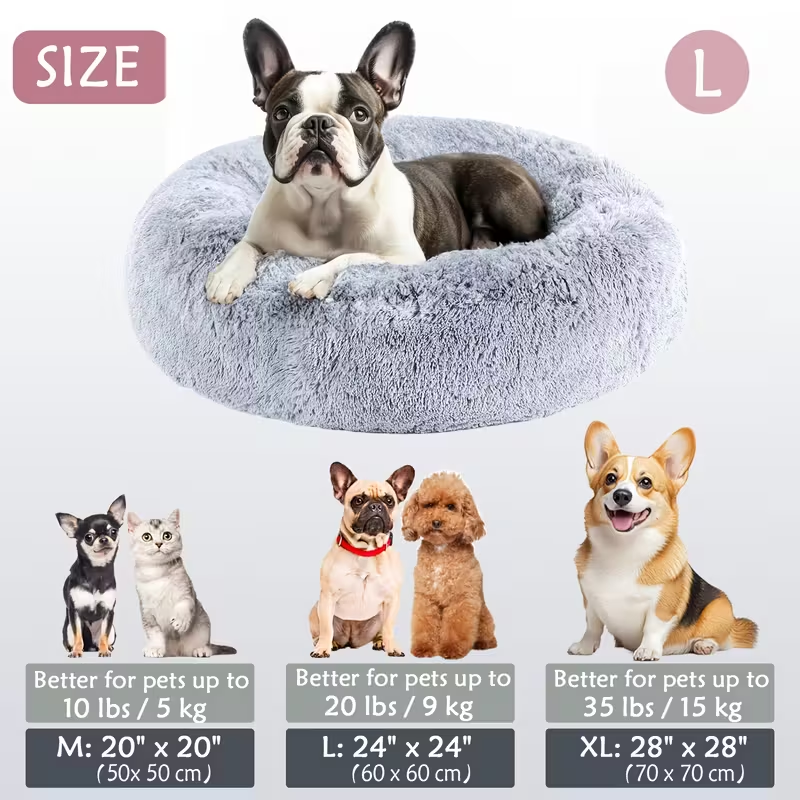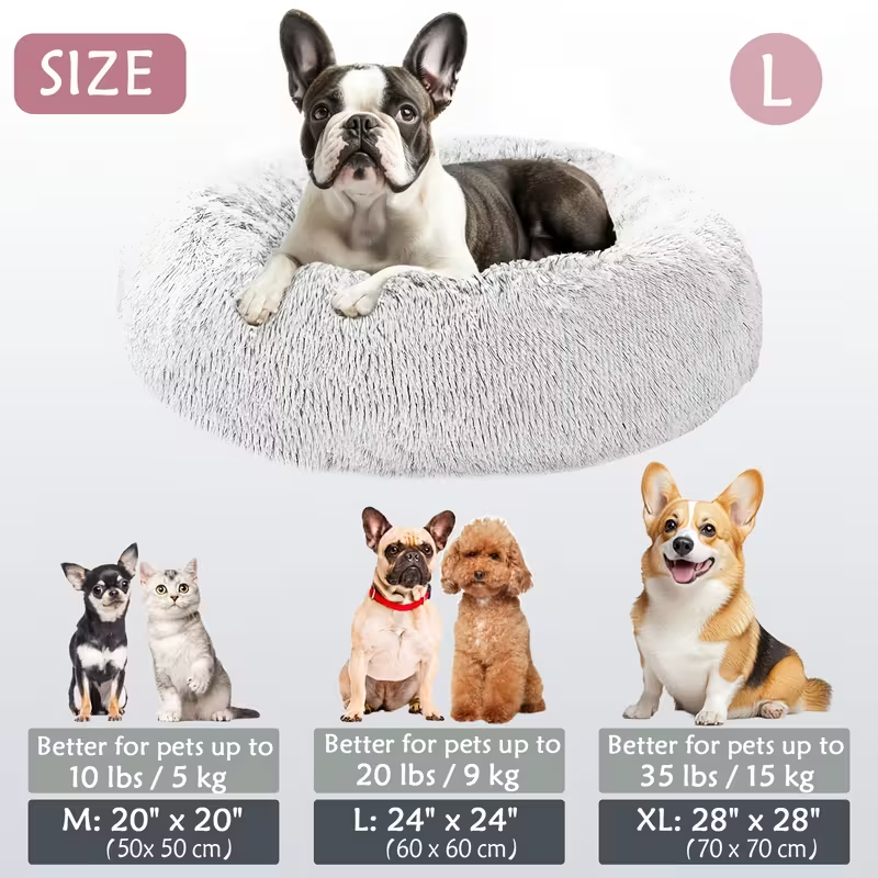 • Cama redonda calmante para perros y gatos de todos los tamaños.