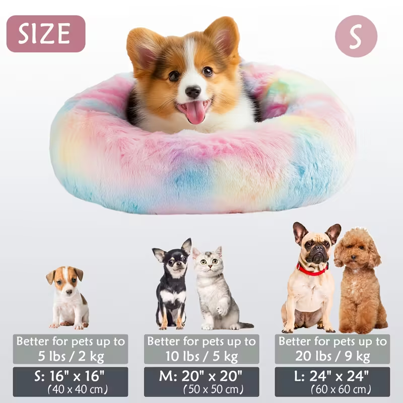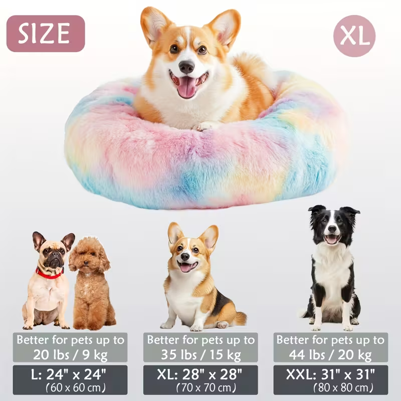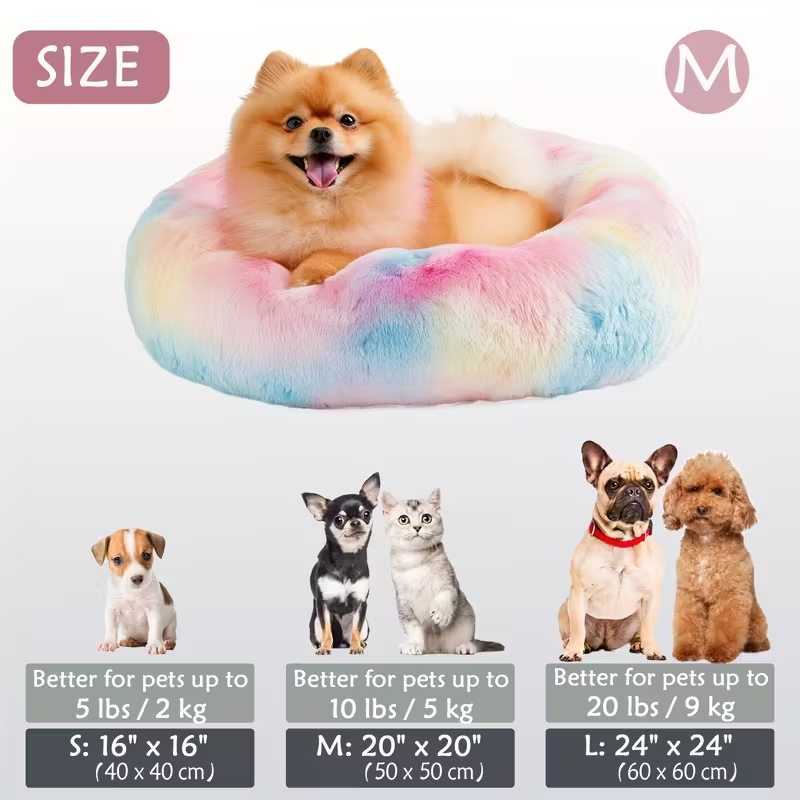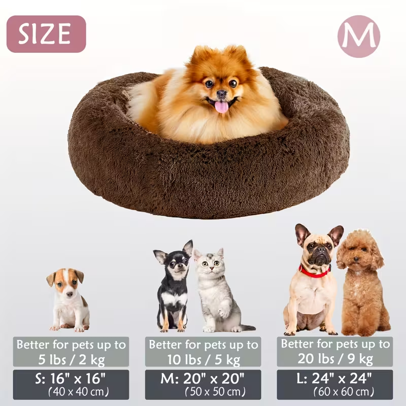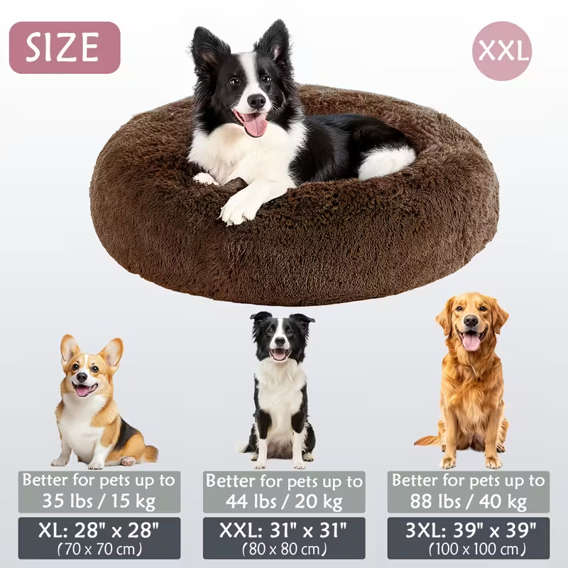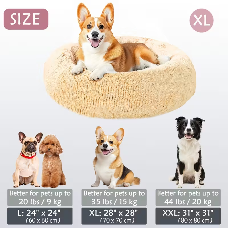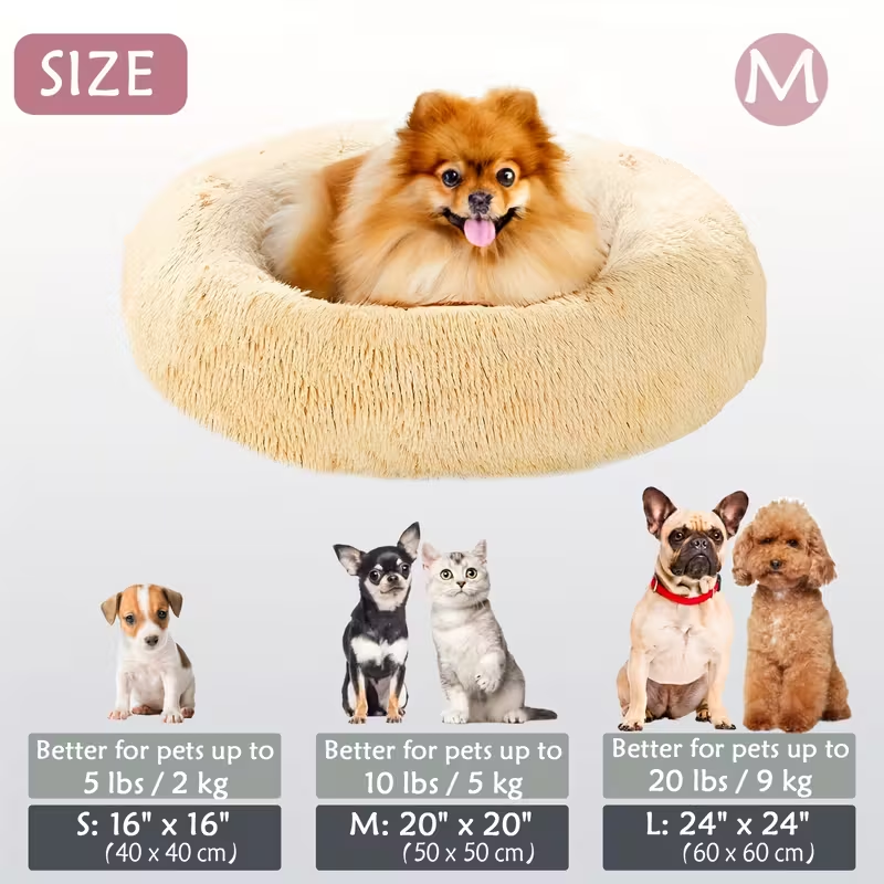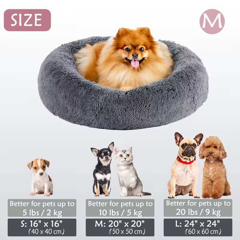 • Cama redonda calmante para perros y gatos de todos los tamaños.