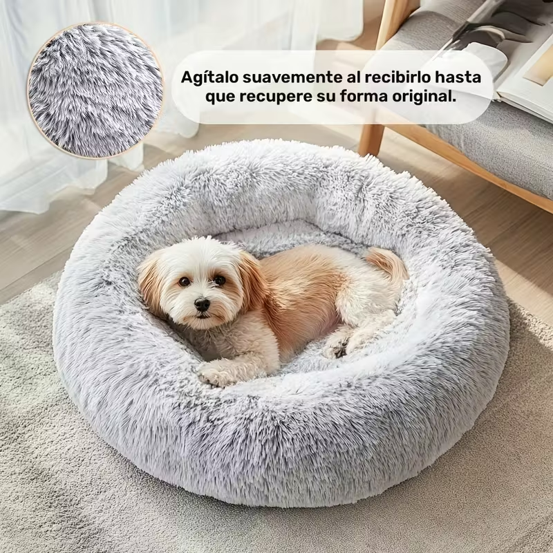 Brinda a tu mascota el descanso que se merece con esta cama calmante redonda de peluche suave, diseñada para proporcionar máxima comodidad, calor y sensación de seguridad. Su forma circular con bordes elevados ofrece soporte para la cabeza y el cuello, ayudando a reducir la ansiedad y mejorar la calidad del sueño de perros y gatos.