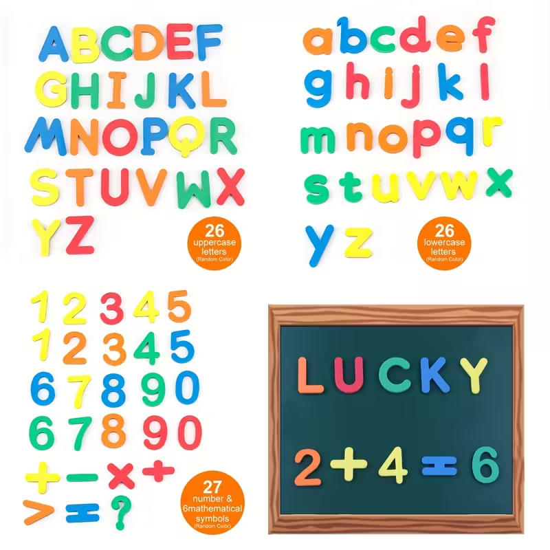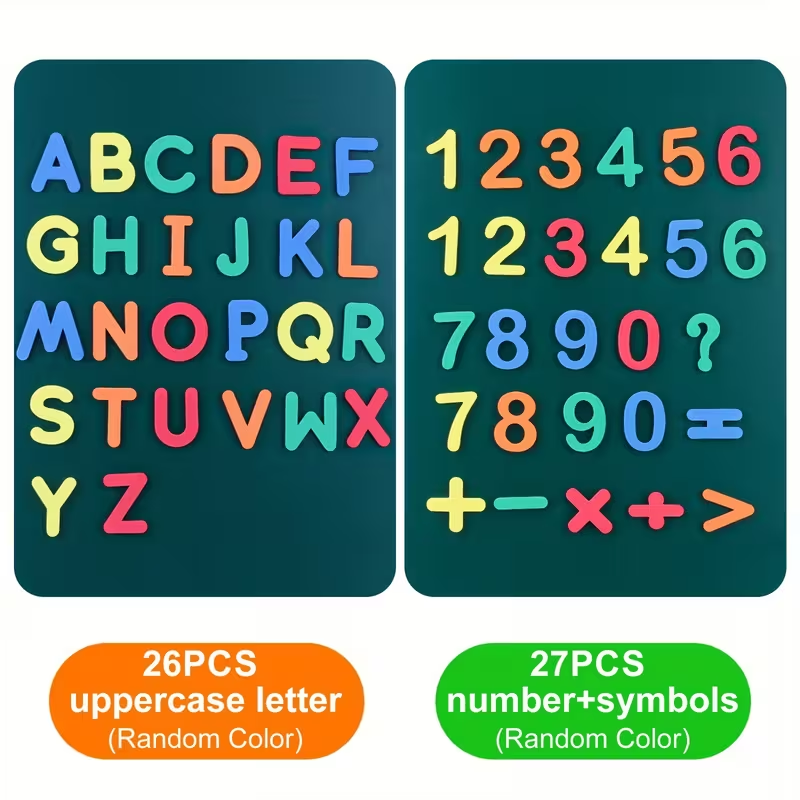 Transforma la hora de aprender en un juego divertido con estas etiquetas magnéticas educativas, un set de letras y números imantados diseñados especialmente para niños. Son ideales para colocarlos en la nevera, pizarras magnéticas u otras superficies metálicas, permitiendo que los pequeños jueguen, formen palabras, aprendan el abecedario, practiquen sumas sencillas y desarrollen su imaginación.