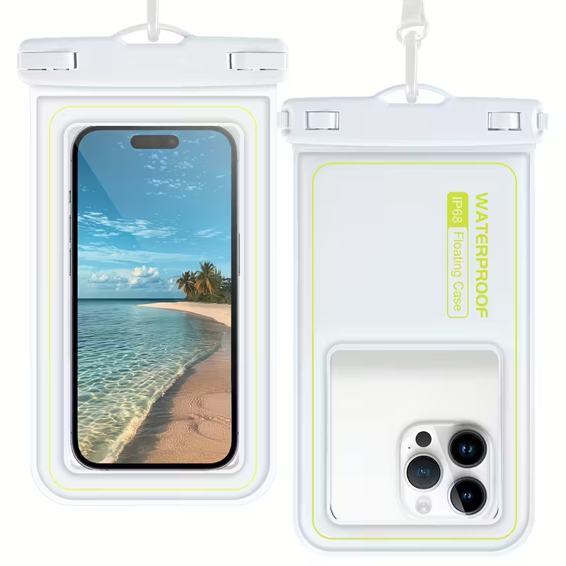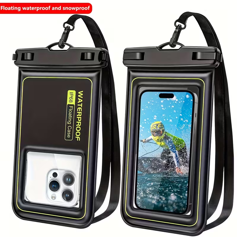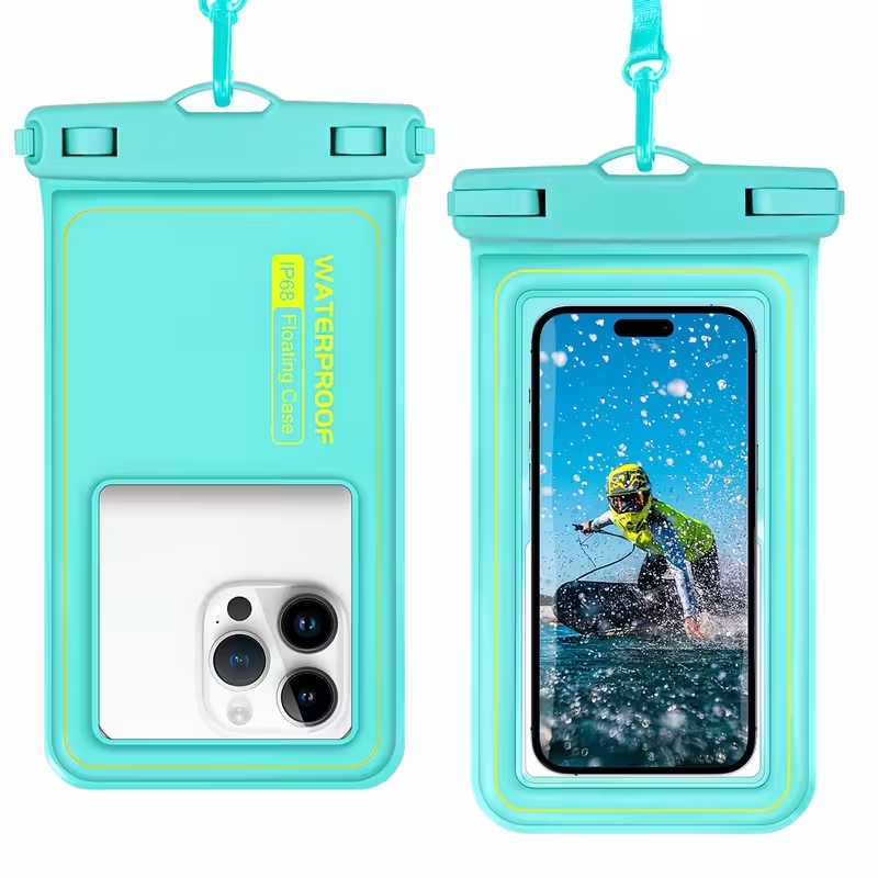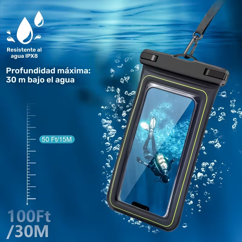 Protege tu smartphone incluso en las condiciones más extremas con esta funda flotante impermeable universal. Diseñada para mantener tu teléfono seco y seguro durante actividades acuáticas como natación, navegación, kayak, pesca o snorkel, esta funda es 100% resistente al agua, al polvo y a la nieve.