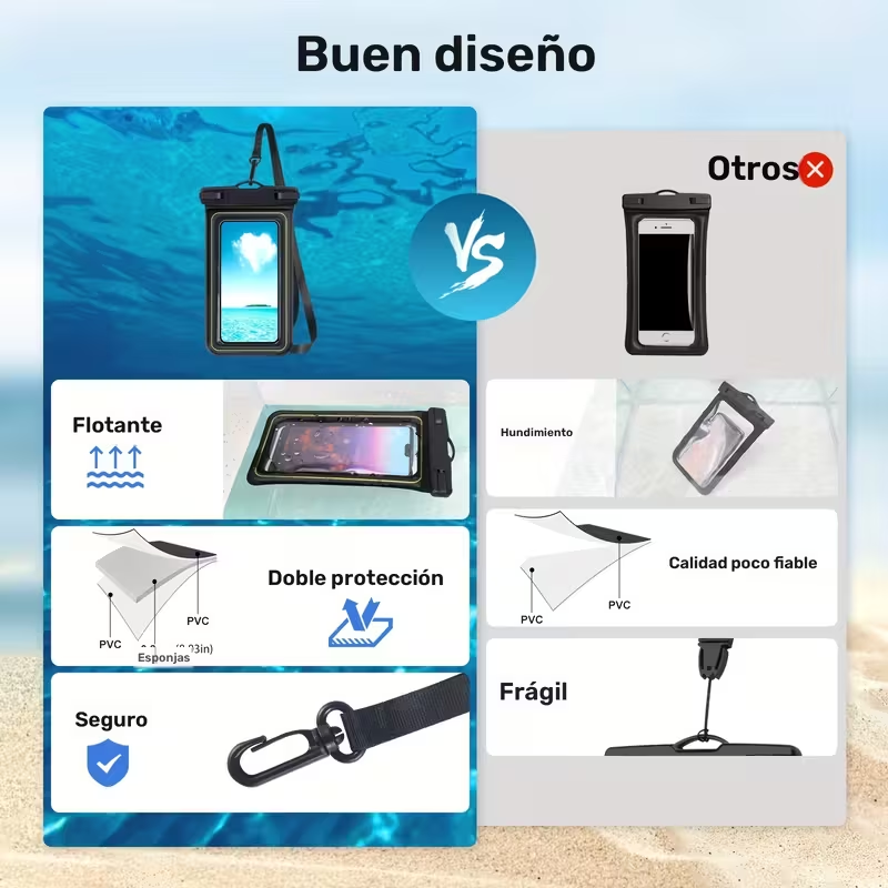 • Impermeable y flotante, ideal para actividades acuáticas y al aire libre.