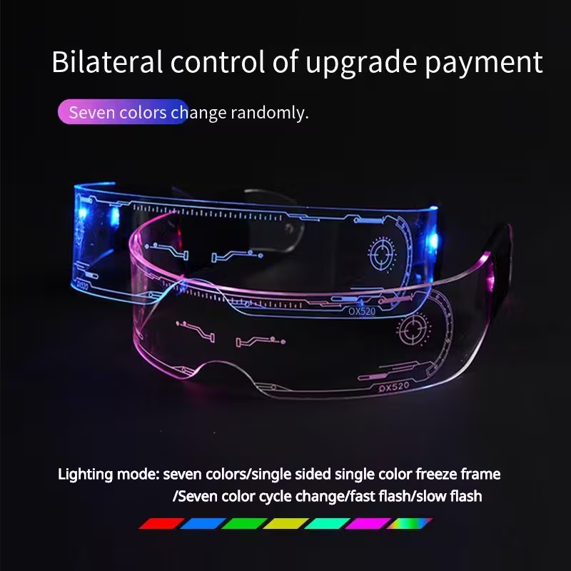 Atrévete a destacar con estas gafas LED estilo punk, diseñadas para brillar con luces de fantasía en 7 colores diferentes. Perfectas para fiestas, conciertos, festivales, eventos nocturnos o disfraces, aportan un toque futurista y rebelde que no pasará desapercibido.