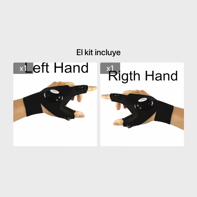 Ilumina tu camino y mantén tus manos libres con este guante de linterna LED sin dedos, ideal para pesca, camping, senderismo o situaciones de emergencia. Su diseño ergonómico con luces LED incorporadas en los dedos proporciona una iluminación precisa justo donde la necesitas, perfecta para tareas nocturnas o en lugares con poca luz.