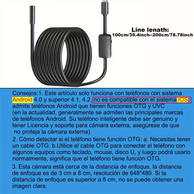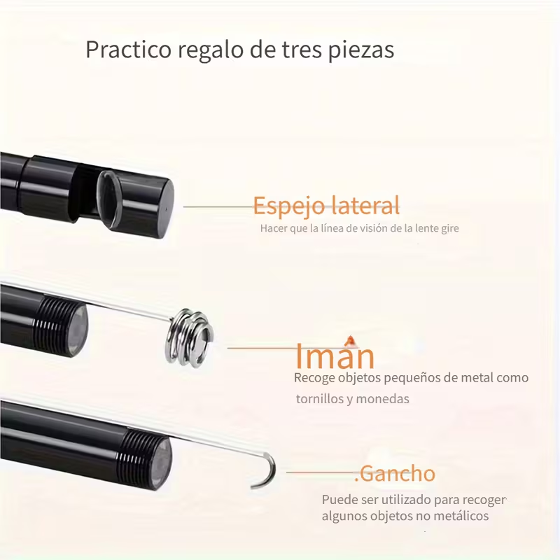 • Cable flexible de 1m o 2m, adaptable a distintas inspecciones.