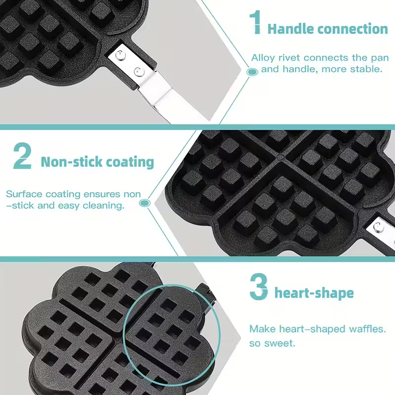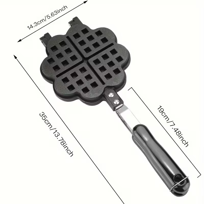 Prepara deliciosos waffles en forma de corazón con esta práctica herramienta para hornear waffles antiadherente de doble cara. Su diseño especial en forma de corazón con patrón floral permite cocinar waffles belgas de manera uniforme y fácil. También puede utilizarse para tostar sándwiches, convirtiéndose en un accesorio versátil para cualquier cocina.
