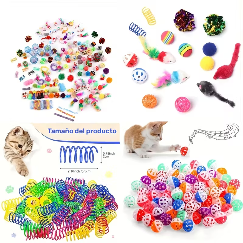 Este set reúne todo lo que tu gato necesita para mantenerse entretenido y saludable. Con una amplia variedad de juguetes coloridos y seguros, ofrece diversión sin fin y un entorno más dinámico y alegre para tus mascotas.
