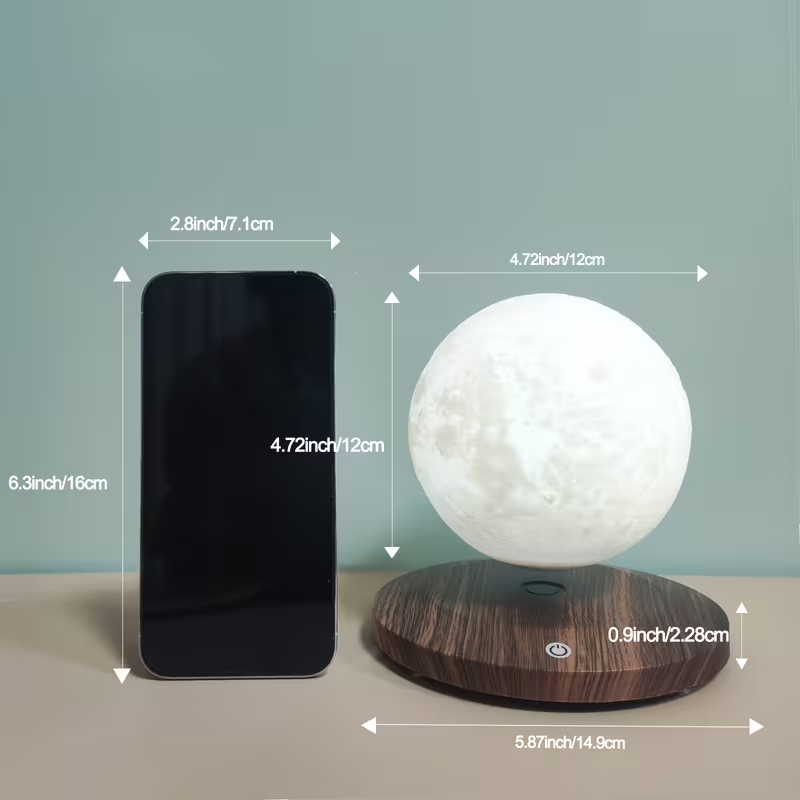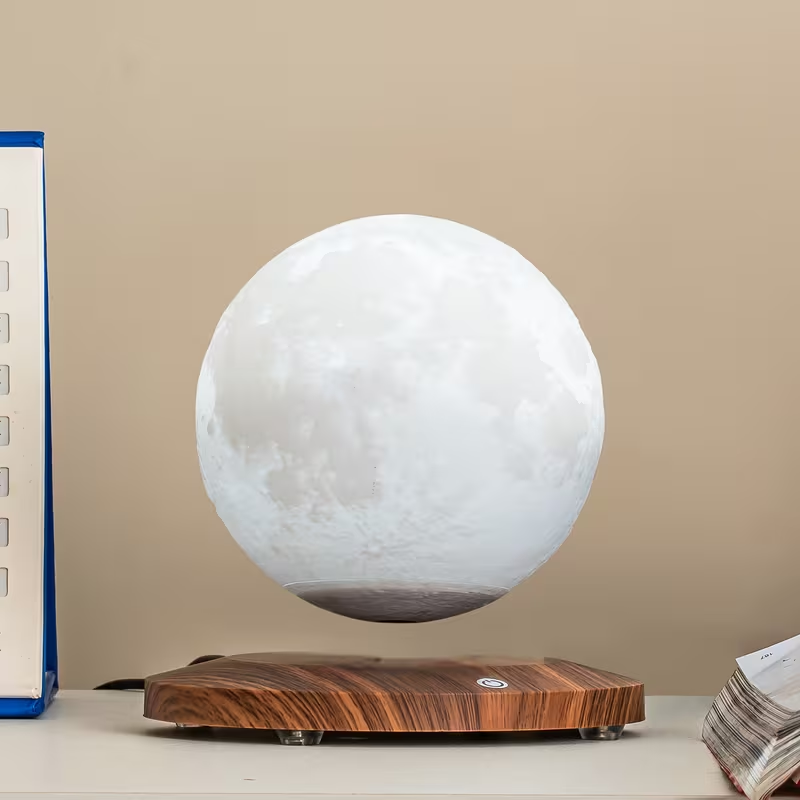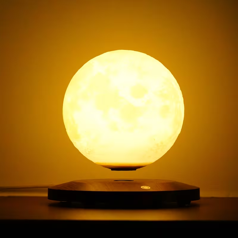 • Lámpara lunar levitante con impresión 3D detallada.