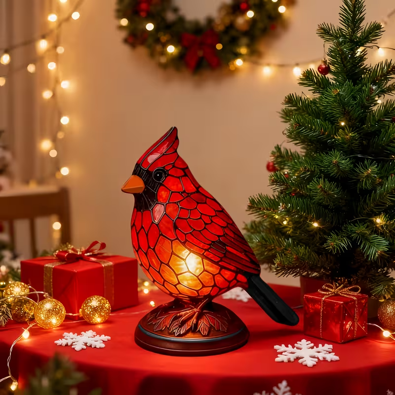 • Lámpara decorativa con diseño de pájaro rojo.