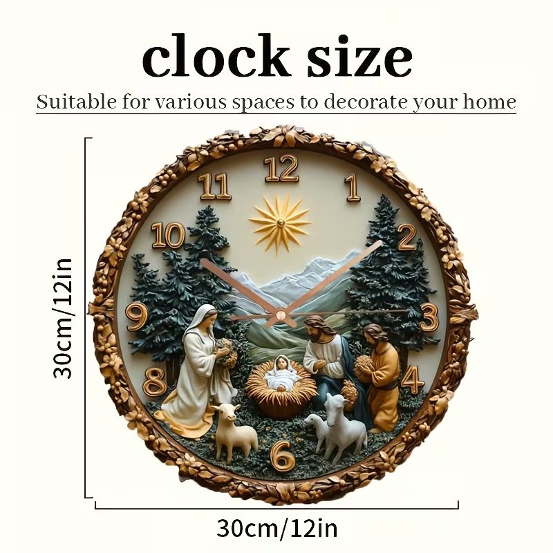 • Reloj de pared redondo de 12 pulgadas con imagen cristiana estilo 3D.