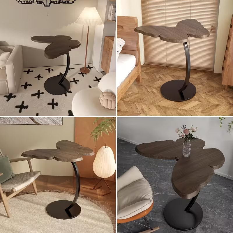 • Mesa auxiliar redonda de estilo retro y diseño moderno.