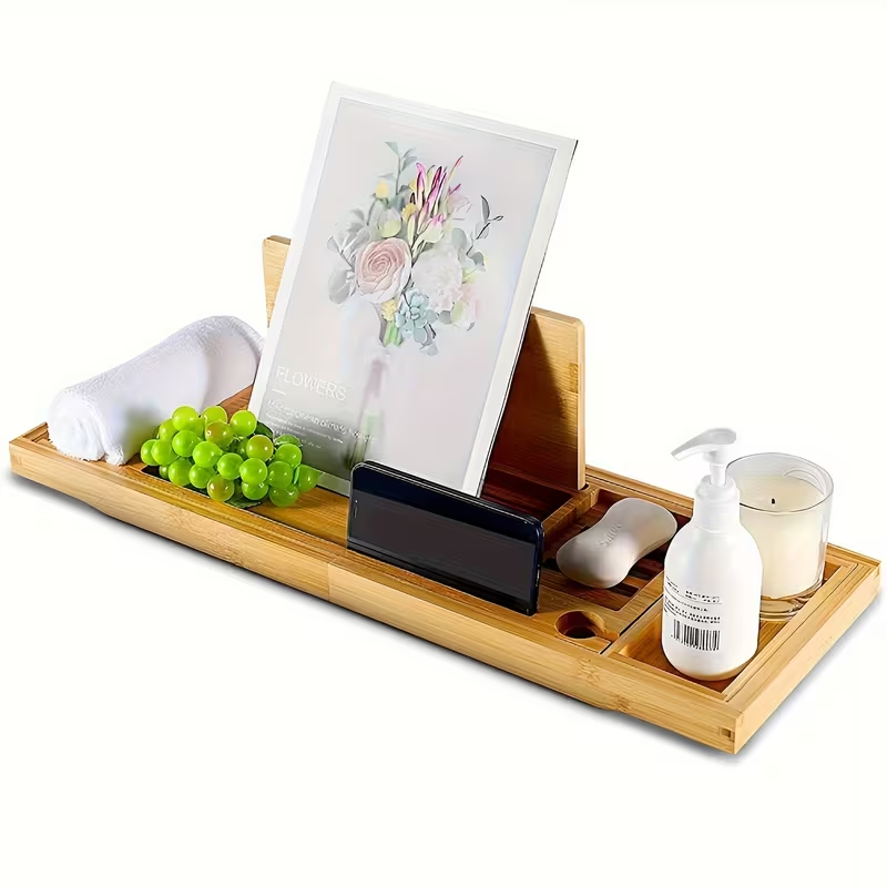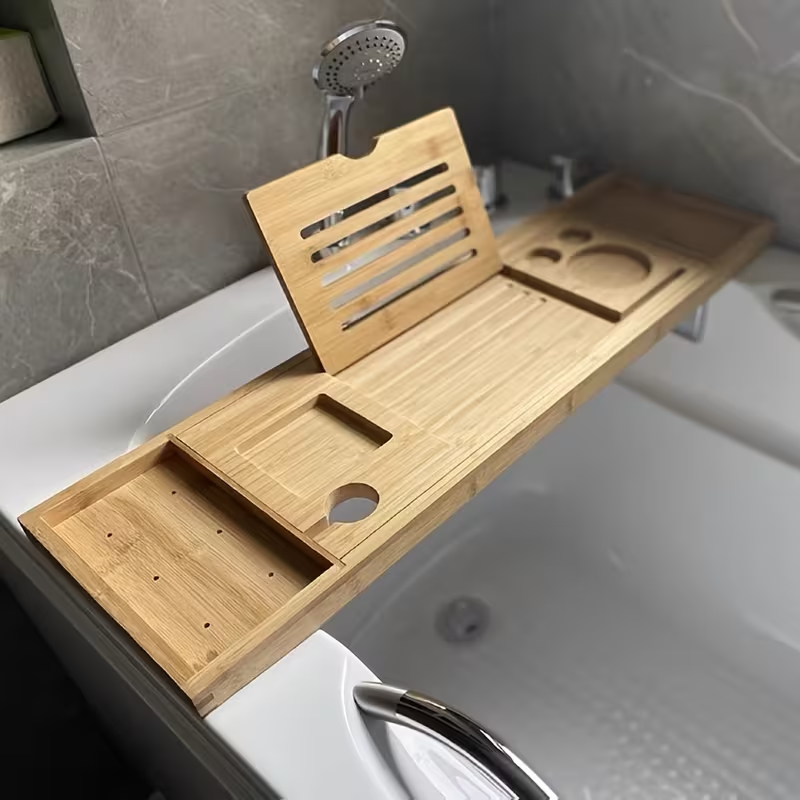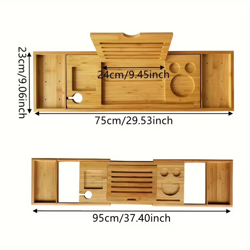 Convierte tu baño en un auténtico spa en casa con esta bandeja expandible para bañera, diseñada para ofrecer comodidad, relajación y funcionalidad. Cuenta con soportes especiales para copa de vino, libro, tablet o teléfono, permitiéndote disfrutar de tu película, lectura o bebida favorita mientras te relajas. Su diseño ajustable se adapta a la mayoría de las bañeras y el agarre antideslizante garantiza estabilidad durante su uso.