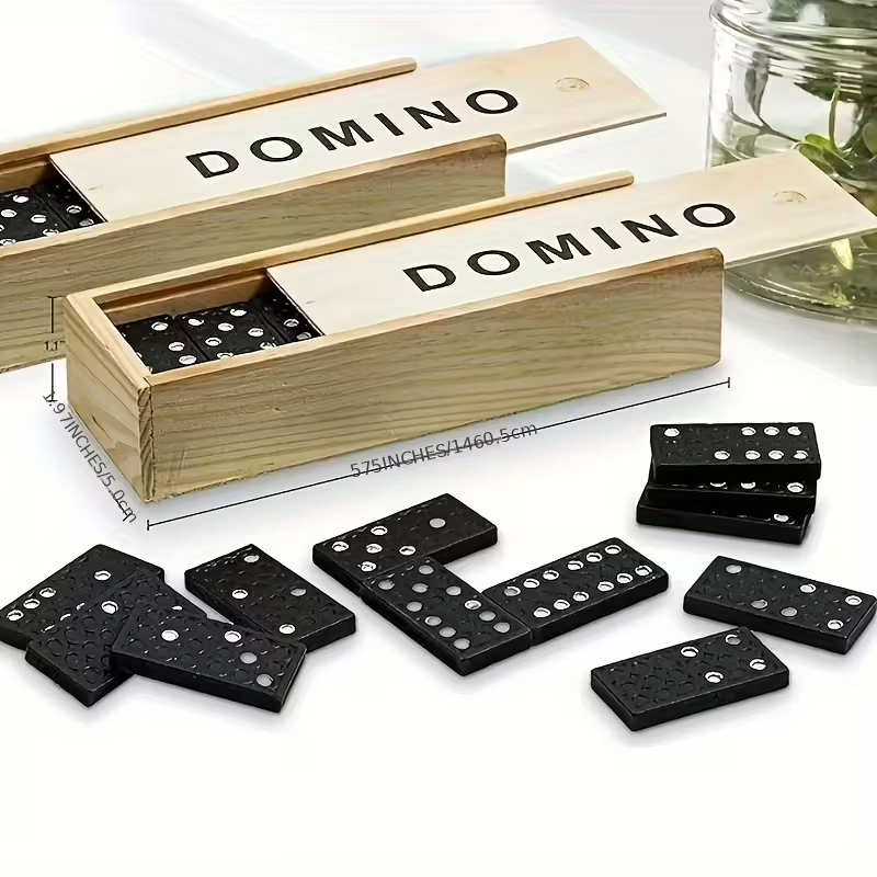 Disfruta del clásico juego de dominó de mesa con 28 piezas, perfecto para compartir momentos divertidos con familia y amigos. Este juego tradicional incluye una elegante caja de madera negra que facilita su almacenamiento y transporte, ideal para llevarlo a viajes, camping o reuniones.