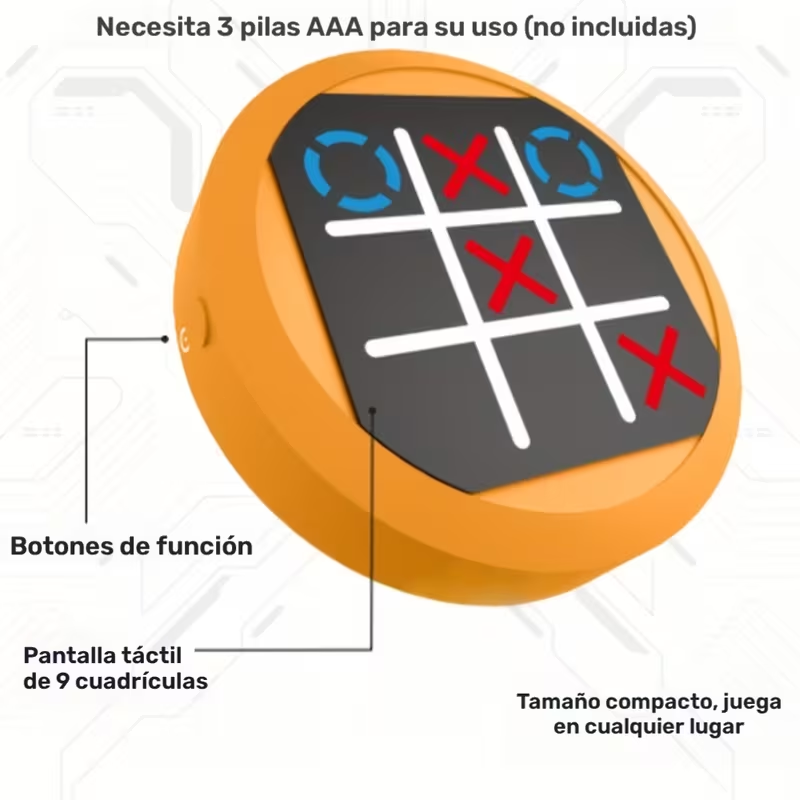 Disfruta de horas de entretenimiento con esta mini consola portátil de tres en raya electrónica, diseñada para ofrecer varios modos de juego, desafíos de memoria y niveles de velocidad progresivos. Su diseño compacto la convierte en un juego perfecto para llevar a cualquier lugar, ideal para viajes, reuniones familiares o momentos de ocio.