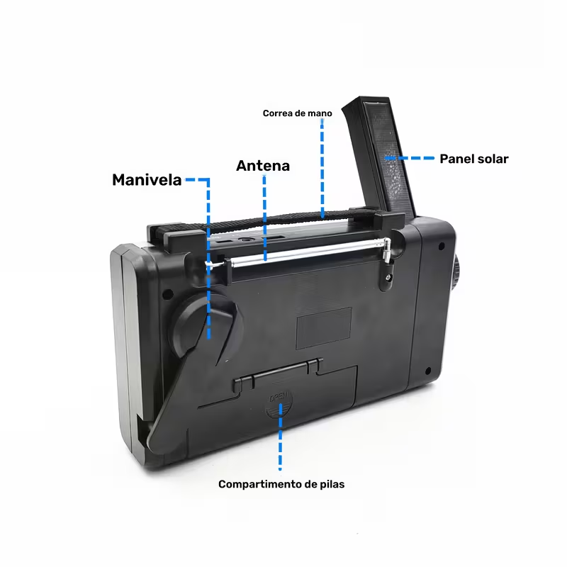 Porque combina seguridad, autonomía y practicidad. Con esta radio de emergencia siempre tendrás luz, comunicación y energía, sin depender de enchufes o baterías externas. Un dispositivo esencial para aventureros, viajeros o cualquier hogar precavido.
