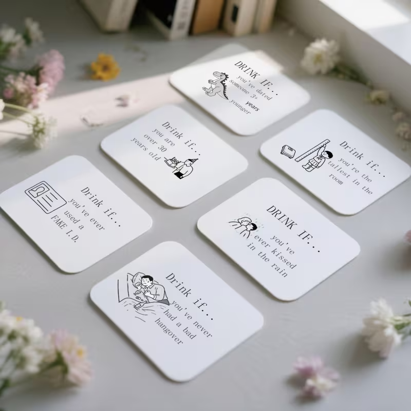 Añade diversión a cualquier celebración con este juego de cartas para fiestas, diseñado especialmente para despedidas, reuniones de amigos y eventos para adultos. Con un diseño creativo en blanco y negro con temática de botella de cerveza, estas cartas ofrecen dinámicas entretenidas que animan cualquier reunión.
